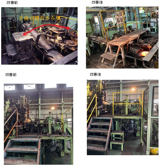 リングミル搬出側プレートに付着したバリの除去作業を行う際、主ロールを跨いで搬出側に回り作業を行おうとした。その際に体勢を崩し落下した。(本人に事故発生時の記憶がないため、現場の状況からの推測)