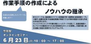 【募集案内】第1回 作業手順の作成によるノウハウの継承